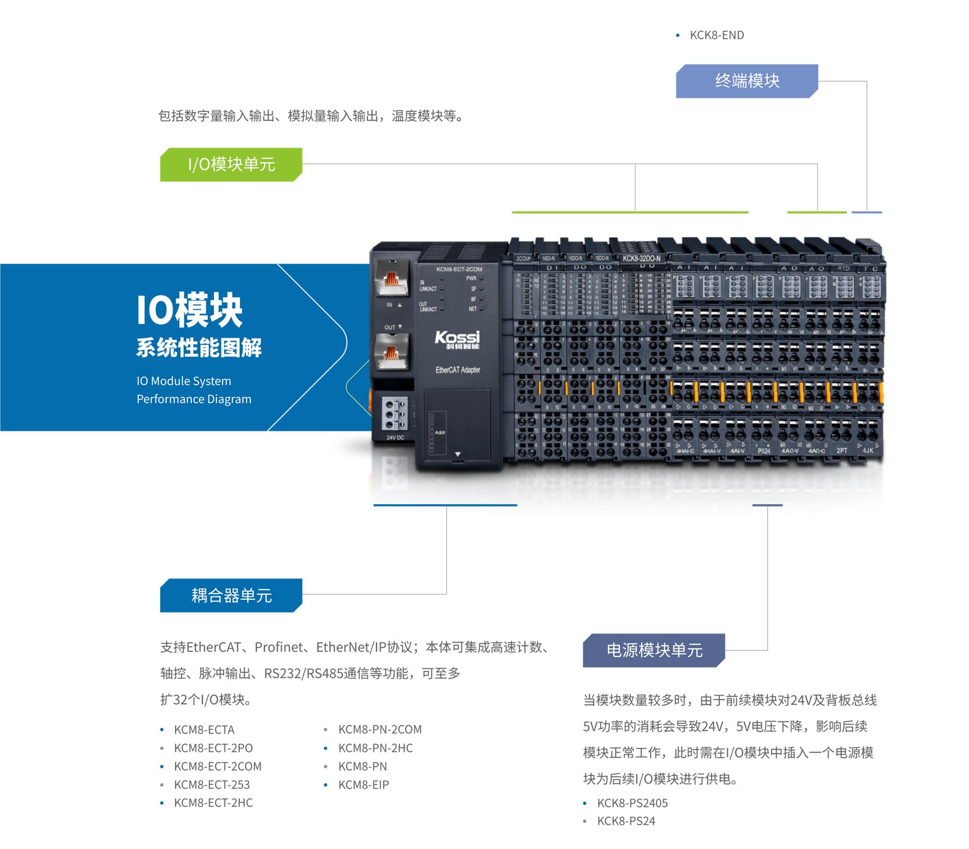 | KCM8-ECT-18 | 耦合器模塊;KCM8系列;EtherCAT總線;2個RJ45網(wǎng)口;可擴展32個模塊;24VDC供電;帶8位撥碼設置站ID地址 |